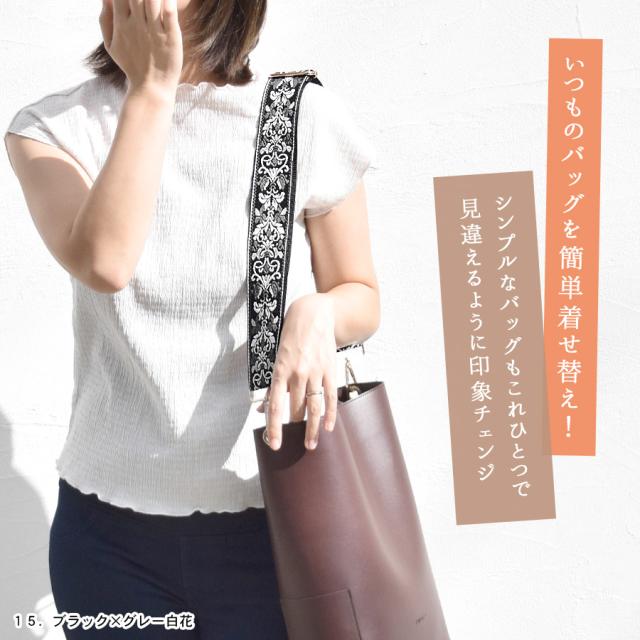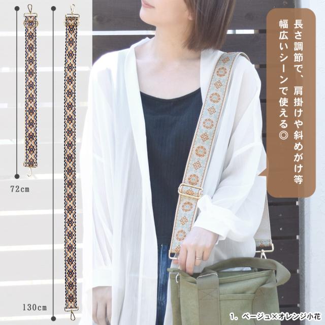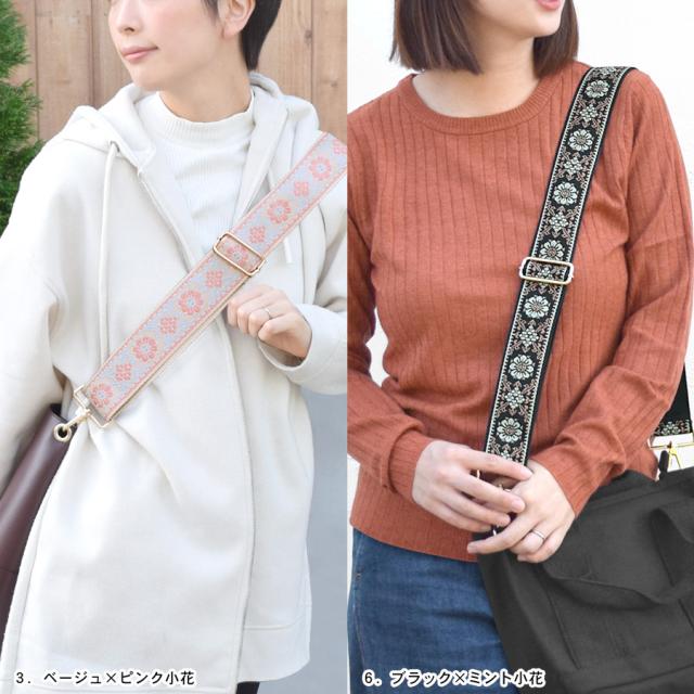 ショルダーストラップ ショルダーベルト 刺繍 太め 幅広 編み込み ジャガード 単品 バッグ用 付け替え レディース バッグ 小物 交換用 肩掛け 斜めがけ 調節 花柄 フラワー エスニック お洒落 送料無料 (cn0643)
