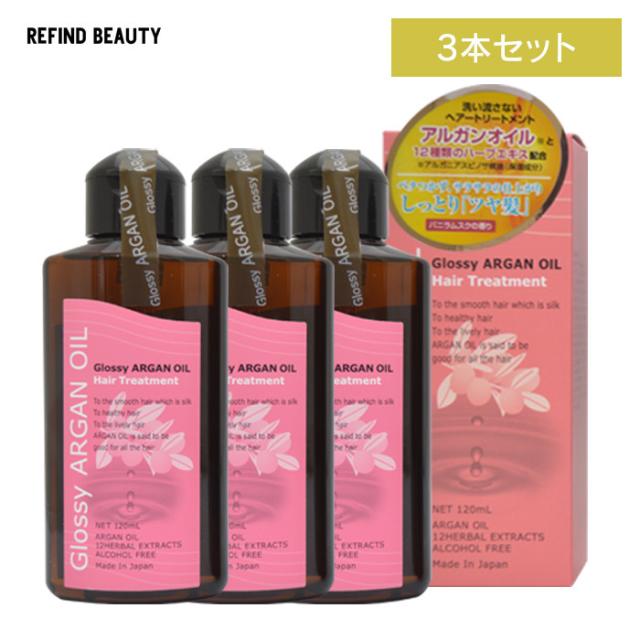 【3本セット】 グラッシー アルガンオイル トリートメント (ピンク)120ml 洗い流さない ヘアトリートメント トリートメント 洗い流さないトリートメント ヘアオイル アルガンオイル さらさら 艶髪 つや ツヤ 髪 潤い サラサラ 保護