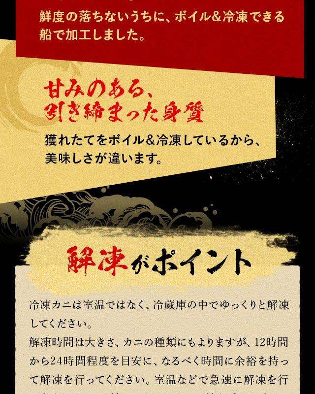 ・解凍しすぎると旨みが流れ出てしまいます。半解凍後速やかに調理してください。