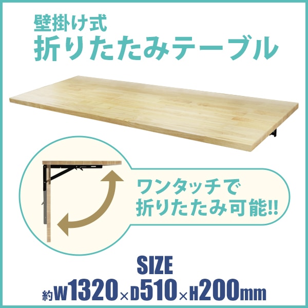 折りたたみテーブル 壁掛け式 木製天板 テーブル 約幅1320×奥行510×高さ200mm オーク材 軽量 ブラケット 折りたたみ 折りたたみ式 勉強机 作業机 机 ワークベンチ ワークテーブル 壁面テーブル 壁面デスク ウォールデスク 壁面 壁 収納 整理 fldwbench52