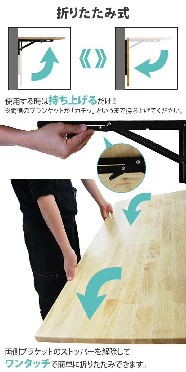 壁面を作業スペースとして有効活用!壁掛け式折りたたみテーブル