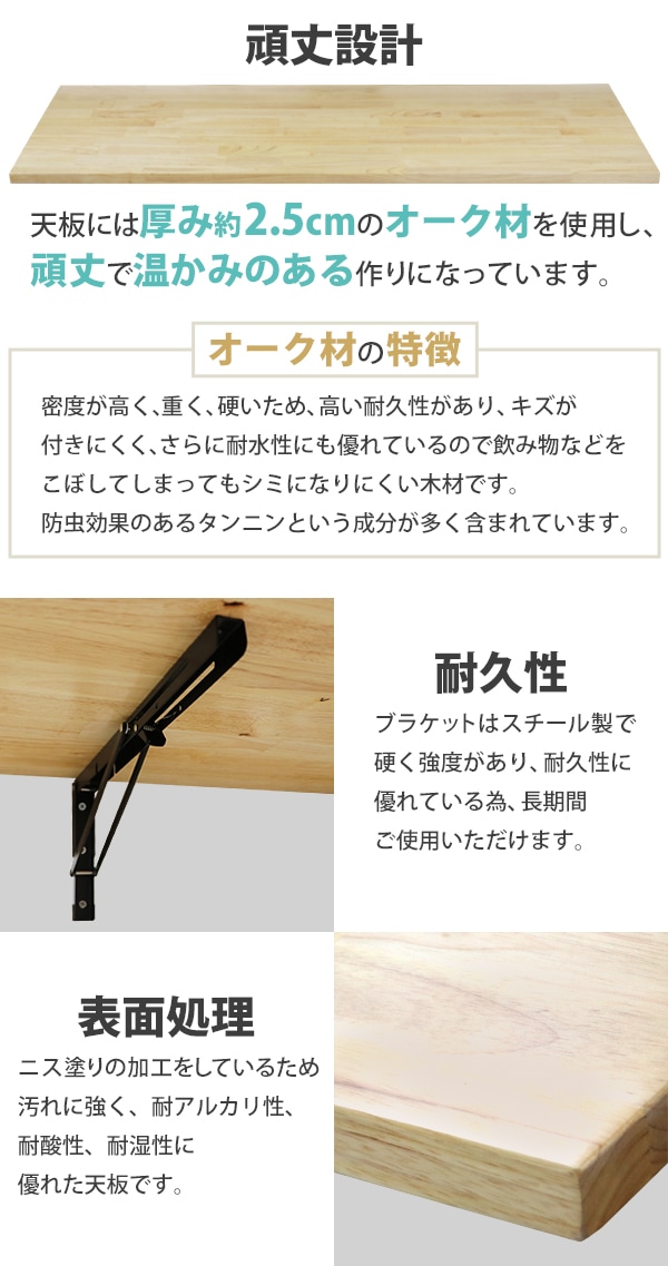 | 材質 | オーク材(天板)、スチール(ブラケット) |