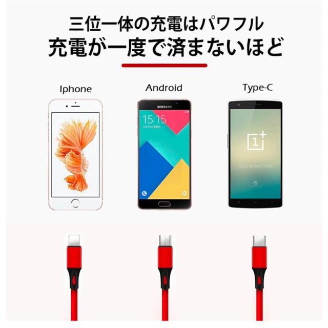 iPhoneケーブル Type-Cケーブル USBケーブル 3in1充電ケーブル ストラップ式 充電ケーブル ナイロンケーブル i