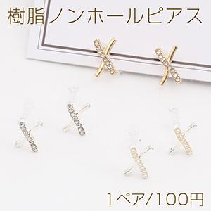 樹脂ノンホールピアス パール付き ラインストーン付き 7×11mm(1ペア)