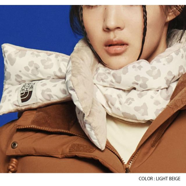 ノースフェイス マフラー フリース ヒョウ柄 レオパード ロゴ カジュアル ストリート アイボリー ホワイト クリーム