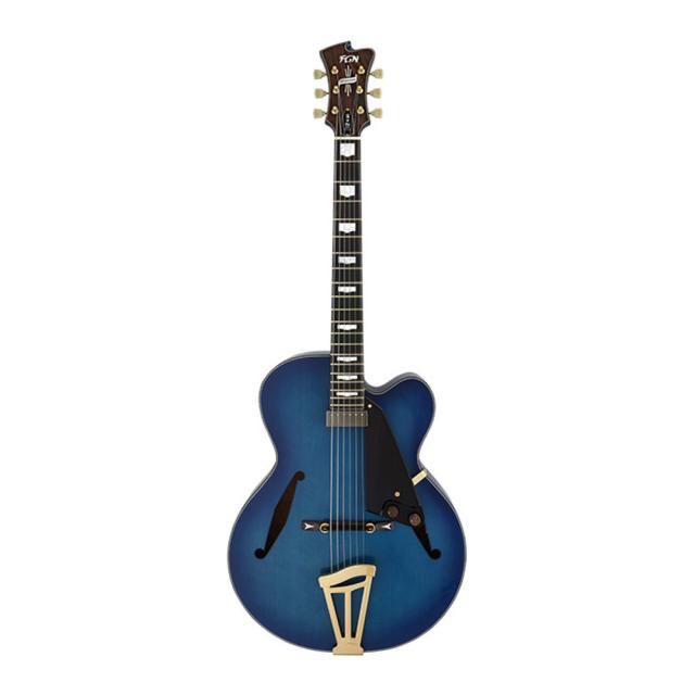 当モデルは、スプルーストップ・カーリーメイプルサイドバックボディ、エボニー指板、人気色ブルーバーストカラーの組み合わせ。トップ材の響きを最大限に活かすため、ほとんどのハードウェアパーツがボディに穴を開けないでいい仕様のものです。ピックアップもフローティングタイプのものを採用しています。フルアコの中でも特に鳴りを大事にしたい、という方は是非こちらのMFA-FPをお選びください。
