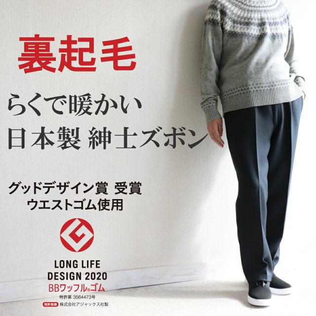 起毛 シニア メンズ 暖か 送料無料 股下65cm 父 おじいちゃん 紳士 【品番5109】ギフト プレゼント 70代 80代 シルバー スラックス ウエストゴム ズボン 日本製 冬 人気 M L LL 男性 快適 裏起毛 らくで暖かい日本製 紳士ズボン