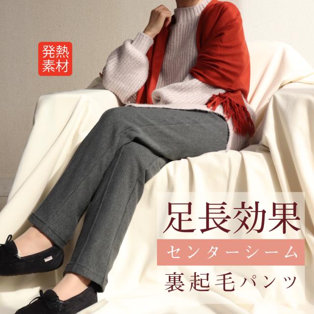 【品番9510】美脚 起毛 ボトムス 光吸収発熱機能 おしゃれ 上品 買い物 普段着 ナチュラルコーデ ミセス パンツ ウエストゴム ストレッチ 40代 50代 60代 70代 ハイミセス レディース ファッション 冬 股下64cm 足長効果 センターシーム 裏起毛パンツ