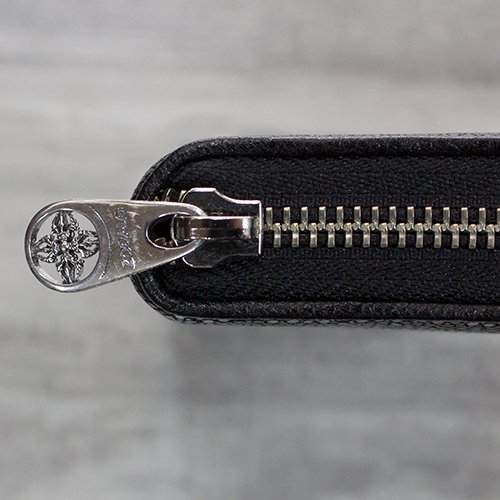 ジッパーのつまみパーツはオリジナルのシルバー製