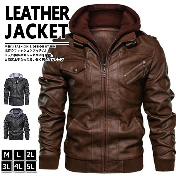 セール中 ライダースジャケット メンズ 革ジャン フード付き レザージャケット フェイクレザー バイク 人気 防風 PU ブルゾン B系 アウター 秋冬