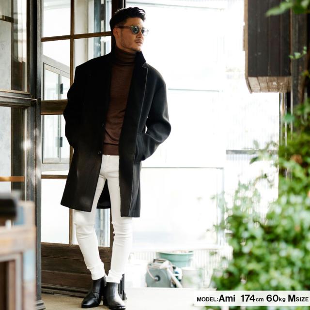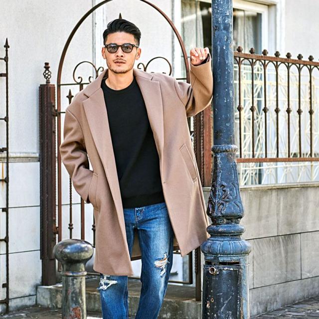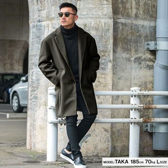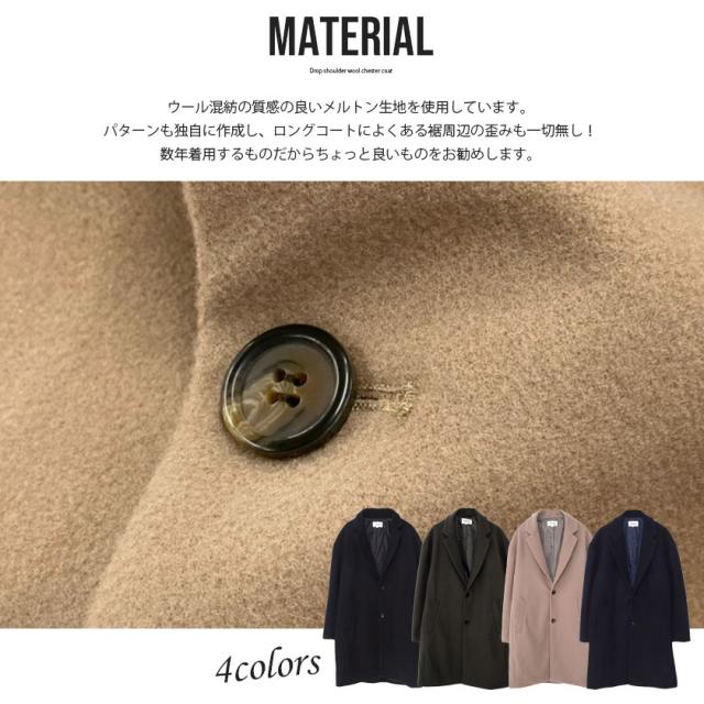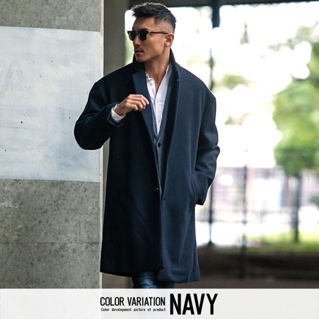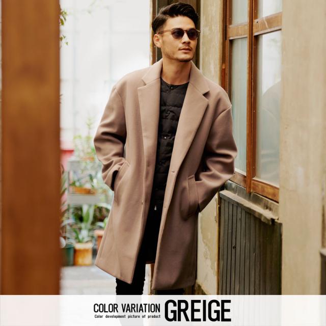チェスターコート アウター メンズ ブランド 大人 ロングコート ドロップショルダー チェスター メルトン 暖かい ジャケット ウールコート ブラック グレージュ きれいめ 大人 秋 冬 CavariA 20代 30代 40代 メンズファッション 即日発送 [CAHP22-09]