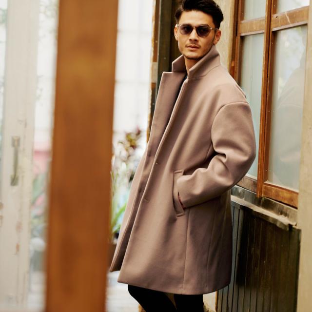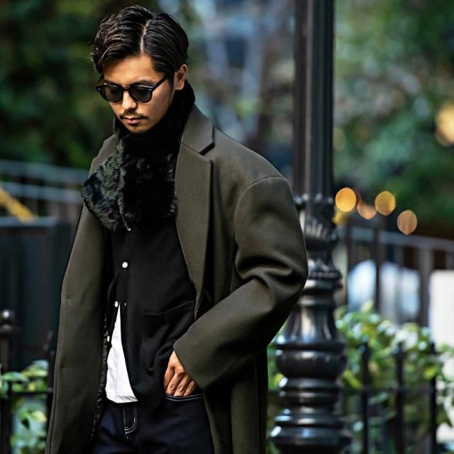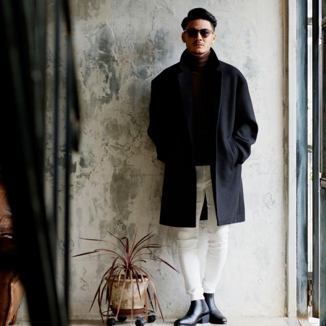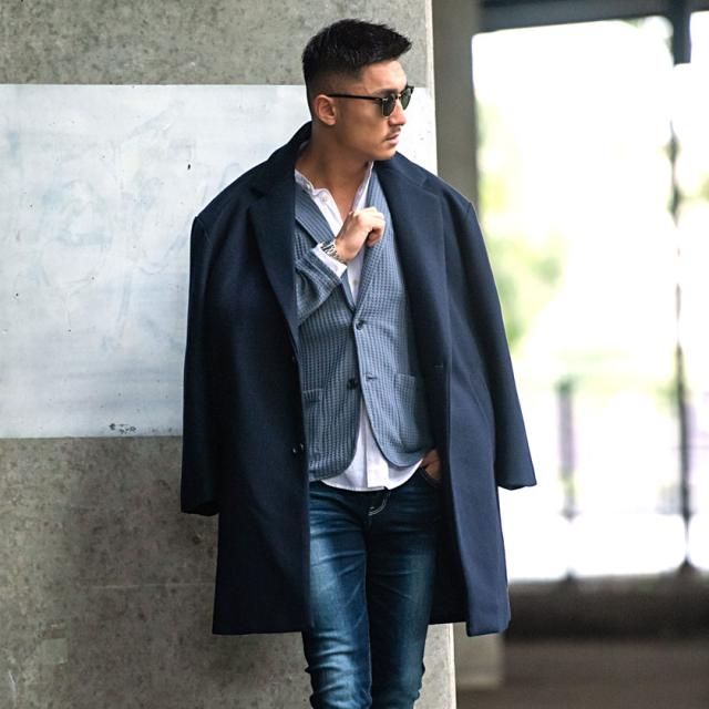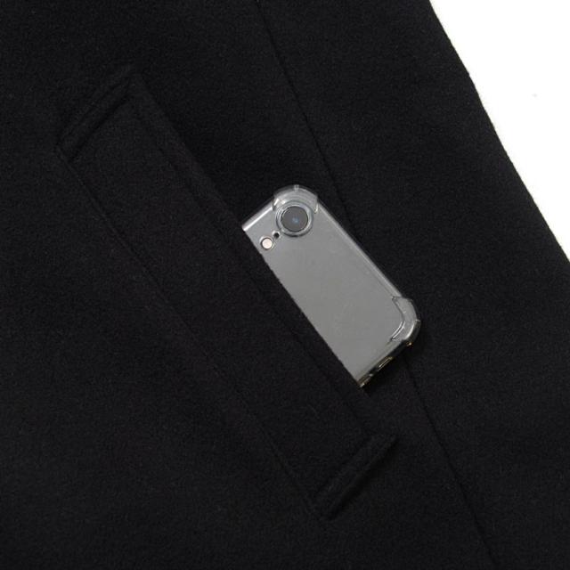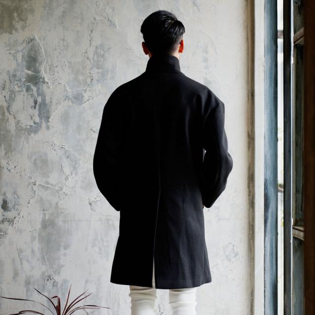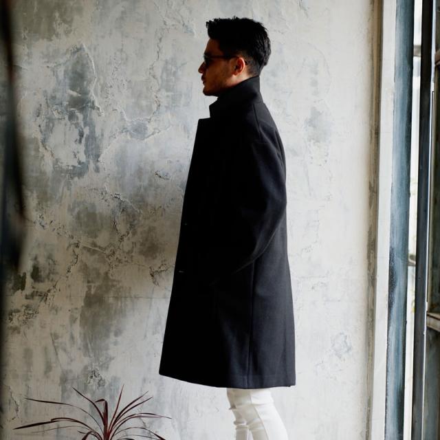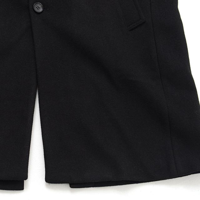 ウール混紡の質感の良いメルトン生地を使用し、パターンも独自に作成し、ロングコートによくある裾周辺の歪みも一切無し!