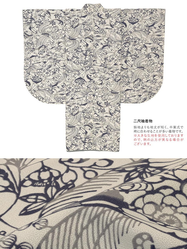 着物は、濃淡のあるボタニカル柄が上品なデザインです。