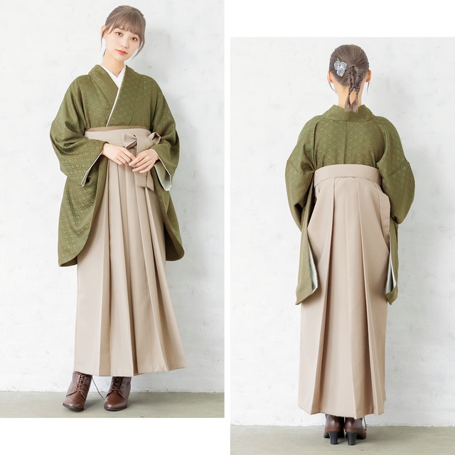 卒業式 袴セット 購入 レディース 大学卒業式 小学生卒業式 販売 緑系 モスグリーン 菊菱 ショート丈 送料無料