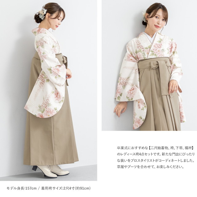 卒業式 袴セット 購入 レディース 大学卒業式 小学生卒業式 販売 ピンク ホワイト 藤 牡丹 花 ボタニカル フェミニン ショート丈 送料無料