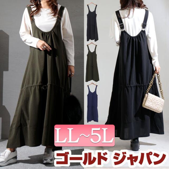 春新作 大きいサイズレディース ワンピース Aラインサロペットワンピース ワンピ サロペットワンピース サロペ ノースリーブ ロング Aライン ティアード フレア ストレッチ マタニティ 秋服 春服 F フリー LL 2L 3L 4L 5L ネイビー ブラック 黒 グリーン ゴールドジャパン