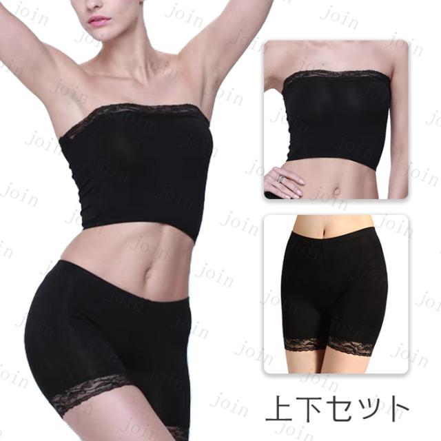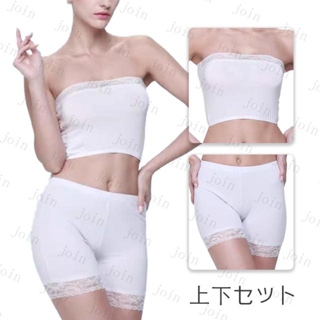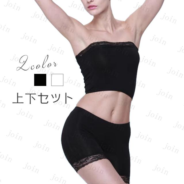 チューブトップ ショーツ セット (tk23#) 日本国内当日発送 上下セット 下着 インナー レディース ストラップレス ショートパンツ 無地 ノンワイヤー レース