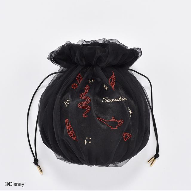寮を象徴するモチーフを繊細な刺繍で表現しました。 柔らかいチュール素材を使用したボリューム感のあるシルエットが可愛い巾着型のショルダーバッグです。 スマートフォン、お財布はもちろん、コスメなどの小物もしっかり収納できる広マチ設計となっているため、メインバッグとしてお使い頂けます。 取り外し可能なボールチェーンのショルダーはコーディネートのワンポイントにもなります。 Scarabia柄について:寮のシンボルのひとつであるコブラをイメージした刺繍がポイントです。 宝石と羽そしてランプを周りにあしらい、寮の持つイメージを表現しました。