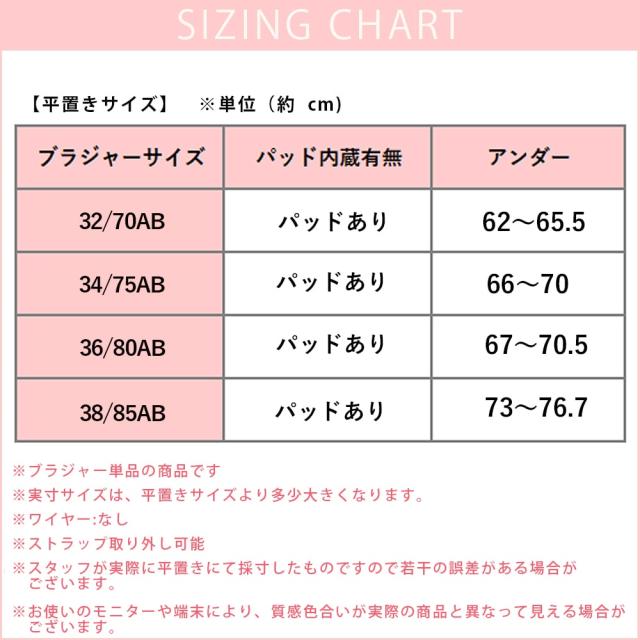 85AB(パッドあり)→アンダー73cm〜76.7cm
