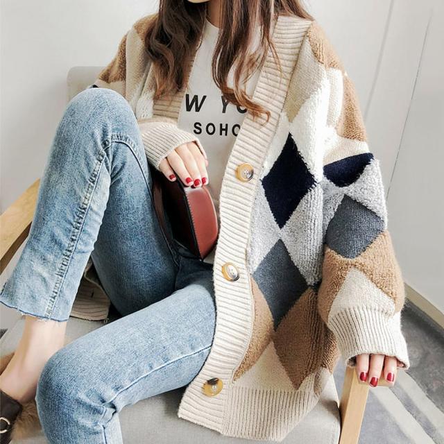 ・お洒落なアーガイル柄のニットカーデ♪1枚でかわいく映えるのでコーディネートのメインとしてヘビロテで着て頂けます♪