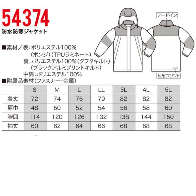 防寒着 クロダルマ KURODARUMA 防水防寒ジャケット 54374 長袖 作業着 秋冬 サイズS〜LL