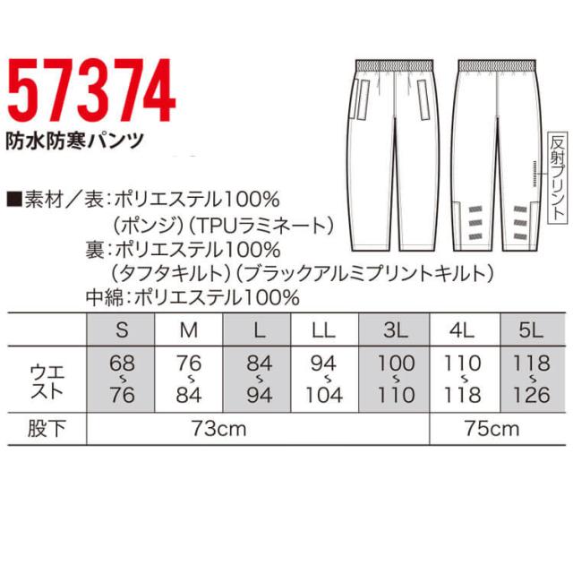 防寒着 クロダルマ KURODARUMA 防水防寒パンツ 57374 パンツ 作業着 秋冬 サイズS〜LL