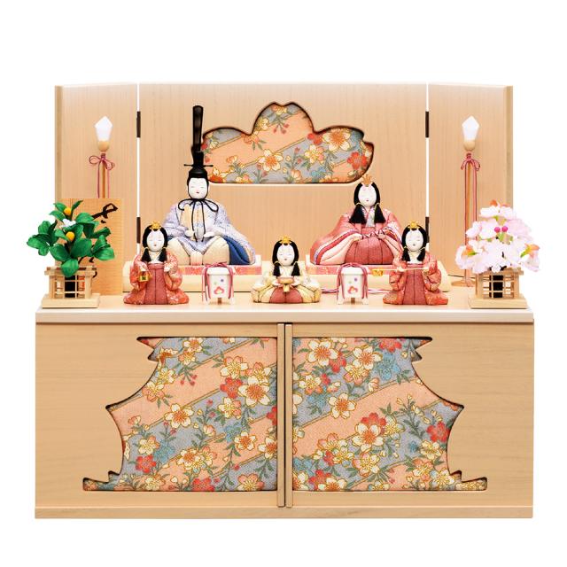 雛人形 お祝い 木目込み 一秀 ひな人形 五人飾り 木目 20号 収納 かわいい コンパクト 木目込 お雛様 おしゃれ 可愛い まる顔