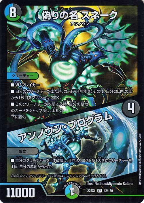 デュエルマスターズ 偽りの名 スネーク/アンノウン・プログラム(ベリーレア) 黄金戦略!!デュエキングMAX 2022(DM22-EX1) | デュエマ 水/闇/自然文明