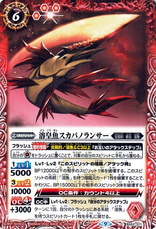 バトルスピリッツ 溶皇魚スカパノランサー(コモン) ライズオブライバルズ(BS62) 011 | 契約編 炎契約・緋炎・溶魚 スピリット 赤