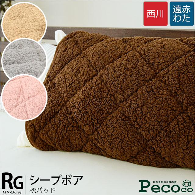 枕パッド 43×63cm用 西川 シープボア ペココ あったか枕パッド まくらパッド 冬 起毛 無地 暖かい 当店限定