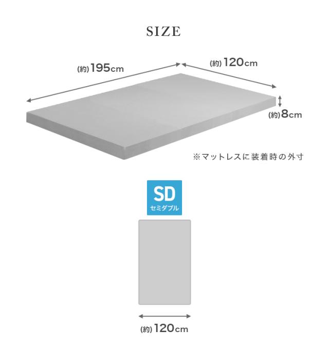 | サイズ | (約)195×120×8cm(セミダブルサイズ) |