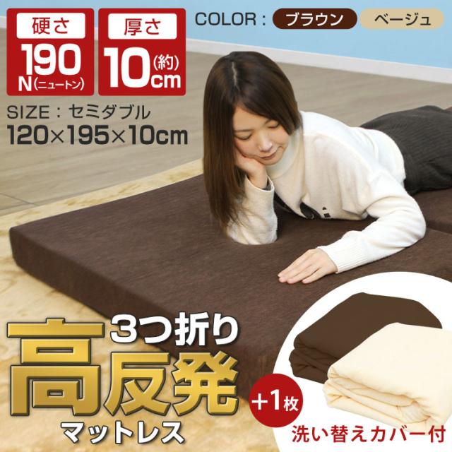 【替えカバーセット】 マットレス セミダブル 高反発 三つ折り 極厚10cm 190N 体圧分散 替えカバーセット 折りたたみ 洗える WEIMALL 送料無料