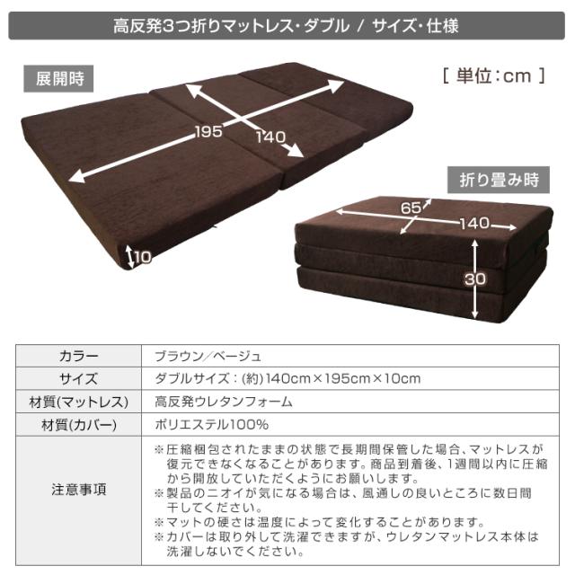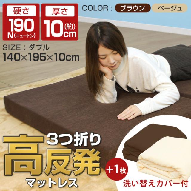 【替えカバーセット】 マットレス ダブル 高反発 三つ折り 極厚10cm 190N 体圧分散 替えカバーセット 折りたたみ 洗える WEIMALL 送料無料