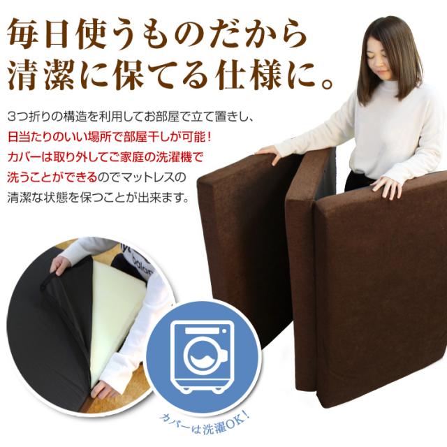 清潔に使えるカバー付き!三つ折り高反発マットレスです。