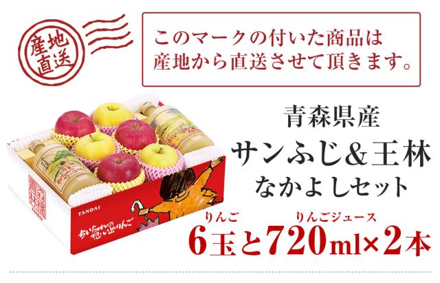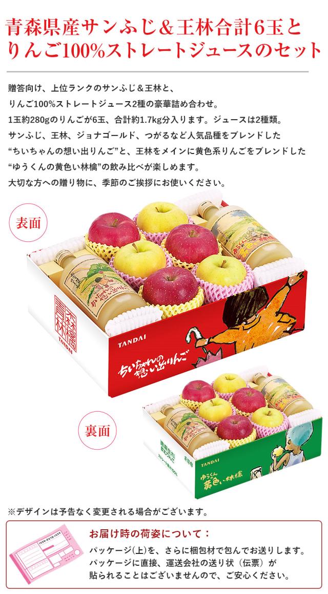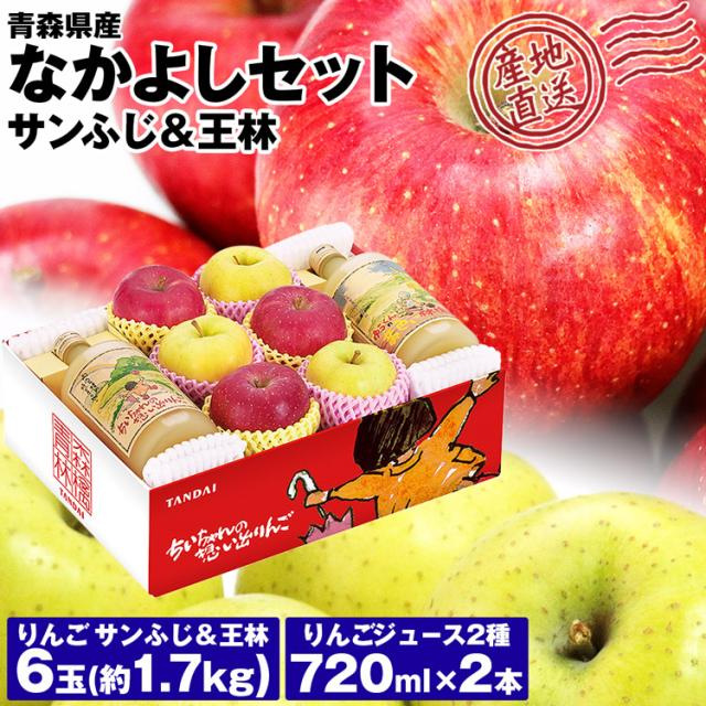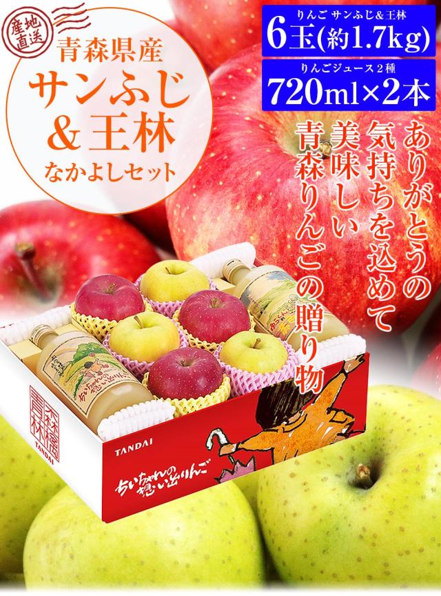 サンふじ 王林 青森県産 食べ比べ りんご6玉&りんごジュース2本 贈答用 りんご 100%ストレート 指定日不可 同梱不可 産直
