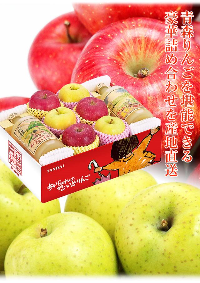 りんご6玉(合計約1.7kg分)と、りんご100%ストレートジュース2本(2種類)入り。