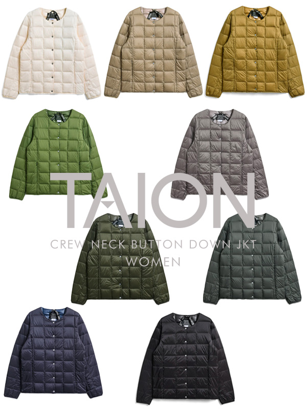 TAION Women's Crew Neck Button Inner Down Jacket タイオン ウィメンズ クルーネックボタン インナーダウンジャケット 【TAION(タイオン)】 TAIONは、2016 年日本発のインナーダウンに専業したブランドとして展開。 ブランド名の由来は、TAION=体温(潜在的な暖かさ、日本発のイメージ) クオリティーに対して圧倒的な コストパフォーマンスによる、価値の追求を スローガンとし、 高品質で高機能なインナーダウンを幅広く展開している。 TAIONのベストセラー、絶大な人気を誇る定番インナーダウンジャケット。 TAIONの定番、ベーシックインナーダウンは、ジャケットやコートの下に着るのはもちろん、 Tシャツ・シャツ・パーカーなどの上にも気軽に羽織れる、軽くて暖かく着回しやすいシンプルなデザインが特徴です。 豊富な色・サイズ展開により使用用途に適したセレクトが可能です。 コンパクトに収納ができ外出時や旅行時に最適です。 インナーダウンという特性上、若干タイトな作りとさせていただいております。 余裕を持って着用されたいお客様はワンサイズアップをおすすめします。 【商品スペック】 ・ダウンは、650flp以上を使用。 ・ダウンキルティングは8cmの格子を採用。 ・表地は撥水加工を施した400Tのナイロンタフタ生地、裏地はACコーティングを施したダウンが吹き出しにくい生地を使用。 (*雨具のような撥水ではありません。) ・前たては、YKKプランサーボタンを使用。 ・両脇に、ファスナーポケットが付いています。 ・収納袋が付いています。 ※ご家庭での洗濯も可能です。 【BASIC LINEの商品について】 BASIC LINEは、カジュアルに普段使いできる汎用性のあるインナーダウンを幅広く取り揃えたラインです。 【ATTENTION】 ダウンは天然由来の素材であるため、稀に濃い色の羽が混入することがあり、表面に透けて見える場合があります。 ※こちらは不良品ではありません。返品や交換につきましてはご対応いたしかねますので、あらかじめご了承ください。 | ||||||||||||||||||||||||||||||