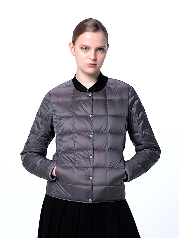 TAION Women's Crew Neck Button Inner Down Jacket