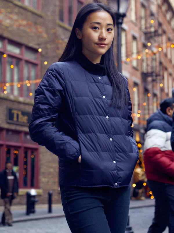 TAIONの定番、ベーシックインナーダウンは、ジャケットやコートの下に着るのはもちろん、