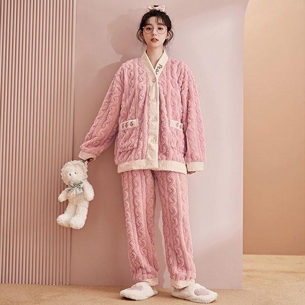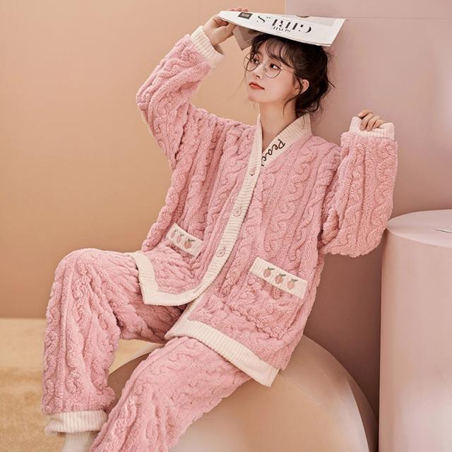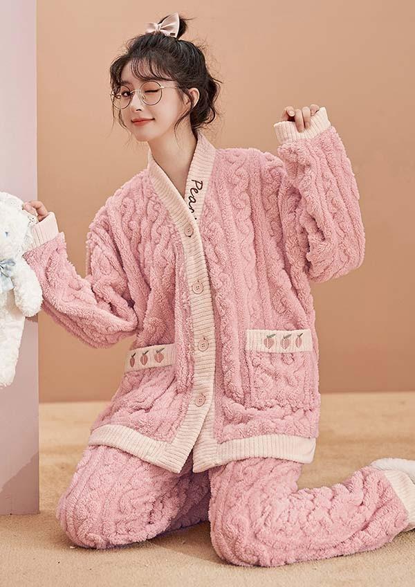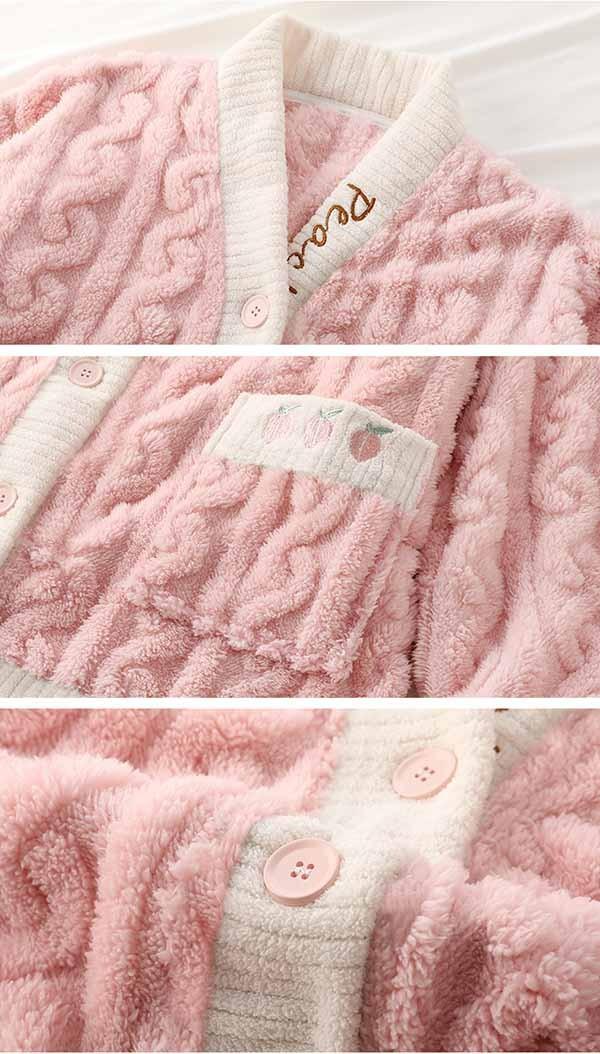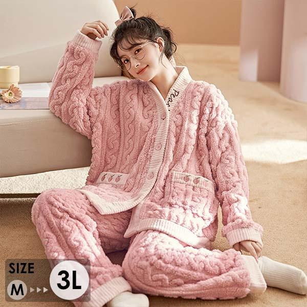 もこもこパジャマ レディース 桃柄 冬 かわいい 長袖 ルームウェア もこもこ パジャマ 部屋着 寝間着 おうち時間 女性用 ふわふわ 前開き 上下ゼット 可愛い 韓国 暖かい モコモコ あったか プレゼント 結婚祝い ピンク dh080n1n1c6