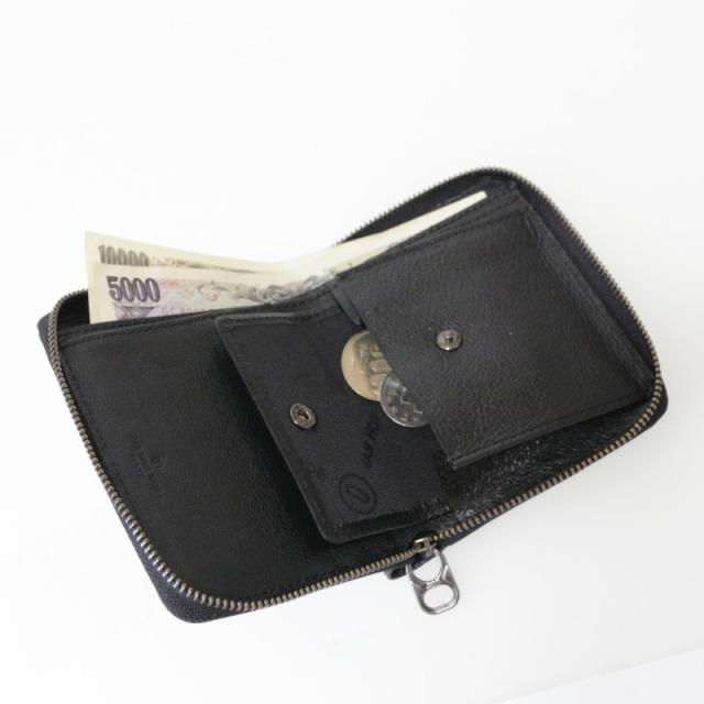 ポケットにスッポリ収まるコンパクトな造りながら、内側に2層の札入れと小銭入れ、さらに3つのカードスリットを設け、紙幣、カード、コインが必要最低限しっかり入る造り。