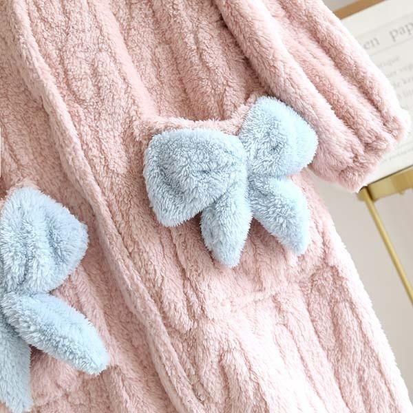 ルームウェア もこもこ パジャマ レディース 冬 ナイトガウン 長袖 オーバーサイズ 大きめ 厚手 着ぐるみ フード付き ポケット付き 寝巻き 部屋着 着る毛布 サンゴ フリース ライトブルー 暖かい 風呂上がり用 防寒防風保温 冷気遮断 dh054x1x1c6