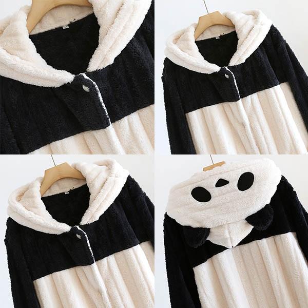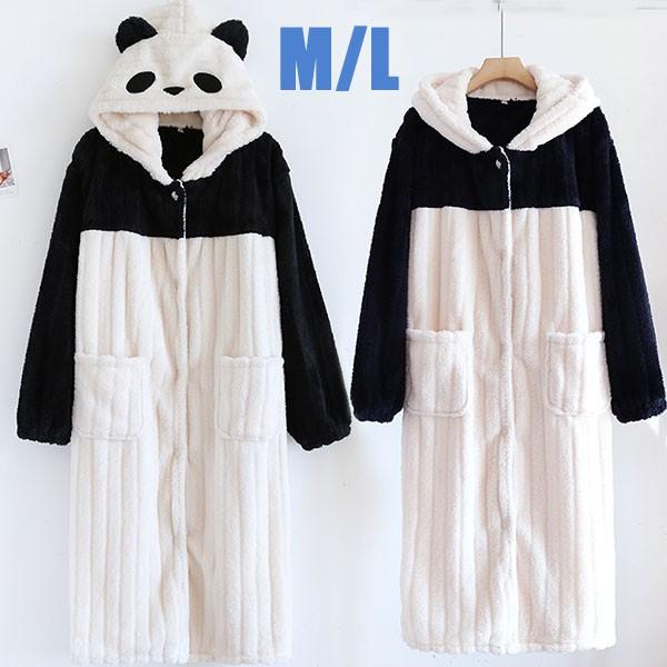 ルームウェア もこもこ クマ耳 パンダ耳 尻尾付き ナイトガウン 前ボタン 動物 アニマル レディース メンズ 冬 長袖 ペアルック カップル オーバーサイズ 大きめ 厚手 着ぐるみ フード付き ポケット付き 部屋着 サンゴ フリース 暖かい 防寒防風保温 冷気遮断 dh053x1x1c6