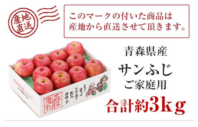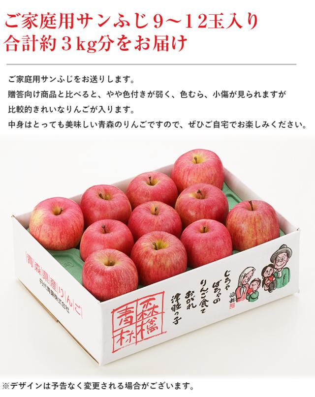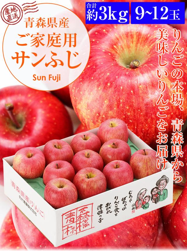 サンふじ 青森県産 ご家庭用 3kg 9〜12玉 りんご リンゴ 林檎 ふじりんご 青森りんご 産地直送 指定日不可 同梱不可 産直