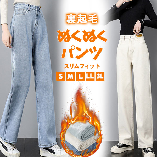 数量限定 ワイドパンツ レディース デニム 裏ボア 厚手 暖かいパンツ ズボン 極暖パンツ 裏起毛パンツ デニムパンツ 暖かい 防風 防寒 あったか 保温