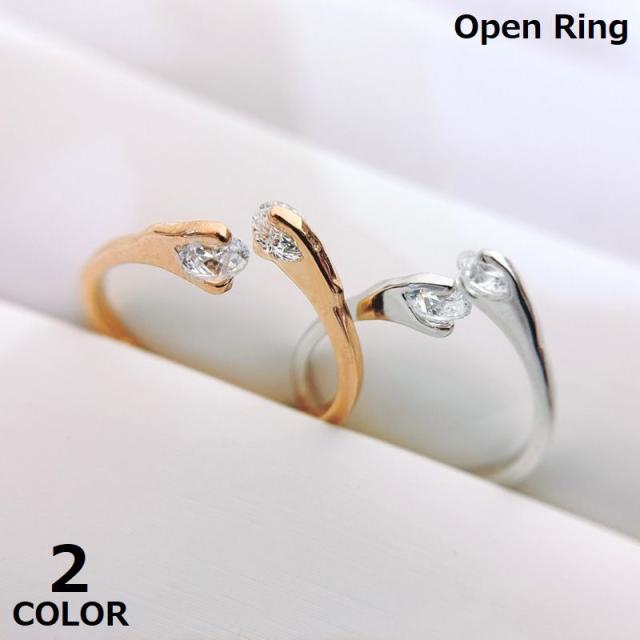 指輪 オープンリング レディース 大人 アクセサリー ラインストーン ビジュー きれいめ 上品 ゴールドカラー シルバーカラー