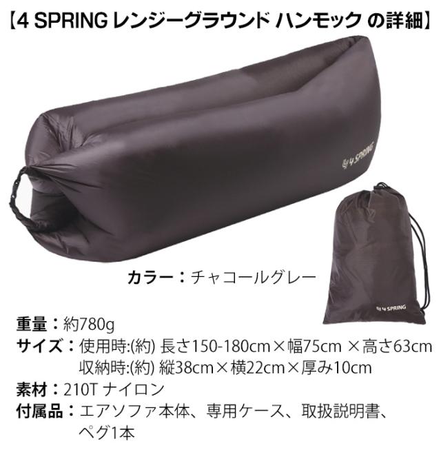 【正規販売店】4 SPRING レイジーグランドハンモック エアソファ 簡易ソファ 空気 ソファ キャンプ エアーソファー 屋外 コンパクト 防水 持ち運び