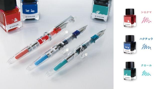 「水面にあらわれるいきもの」がモチーフのminamoがテーマの万年筆セット。