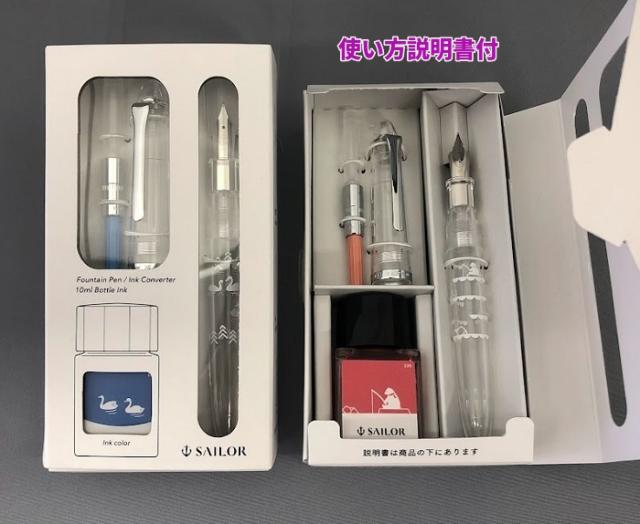 万年筆、インク吸入器コンバーター、ボトルインクの3点が入ったすぐに使えるセットです。