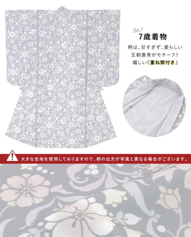 七五三 着物 7歳 販売 七歳 着物セット 女の子 作り帯 筥迫 草履 バッグ 11点セット 紫系 パープル 王朝唐草 和服 和装 女児 仕立て上がり 送料無料